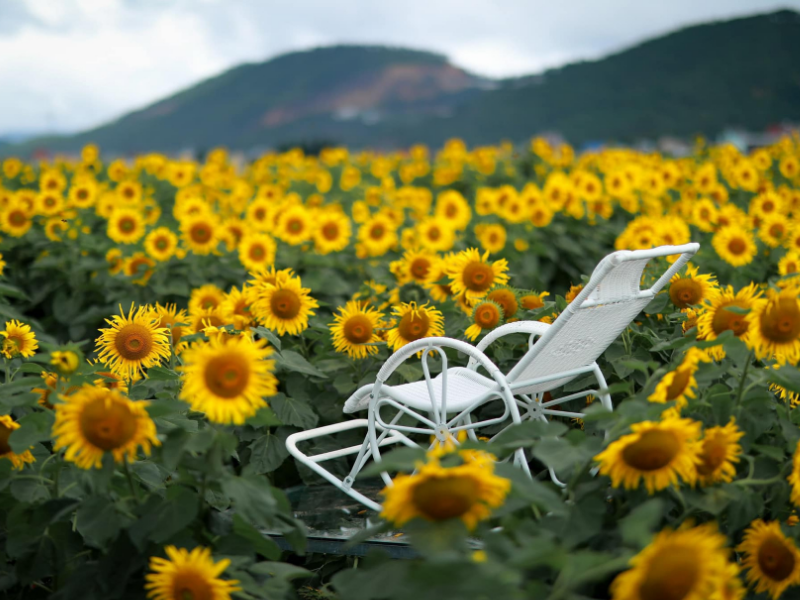 Hoa hướng dương với đặc tính luôn hướng về phía mặt trời tượng trưng cho sự lạc quan và hy vọng, rất phù hợp với không khí lễ hội và du lịch cuối năm. Đây cũng là thời điểm Đà Lạt trở nên nhộn nhịp hơn với các hoạt động tham quan, nghỉ dưỡng và chào đón năm mới.