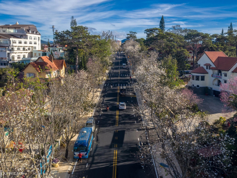 Hoa ban trắng thường nở rộ vào khoảng tháng 2 đến đầu tháng 3, tập trung nhiều ở khu vực đường Quang Trung, Trần Phú và một số tuyến phố trung tâm. Cánh hoa mỏng manh, màu trắng pha tím nhạt, nổi bật trên nền trời xanh và những hàng thông xanh mướt. Mùa hoa ban không quá rực rỡ nhưng lại khiến nhiều du khách say mê bởi vẻ đẹp thanh thoát, rất phù hợp với những ai yêu thích sự yên bình và trầm lắng của Đà Lạt.