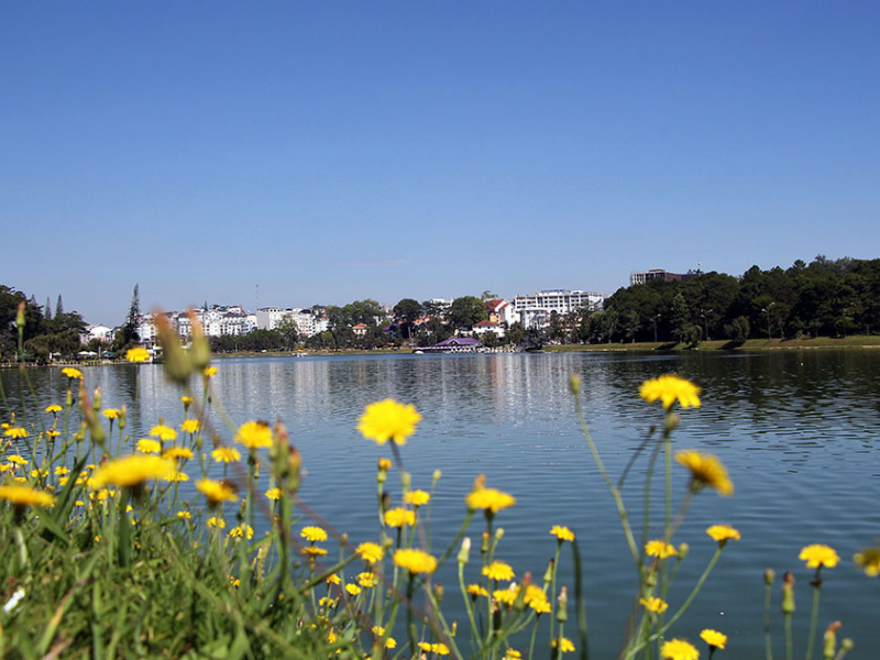 Hoa bồ công anh nổi bật trên bờ hồ Xuân Hương
