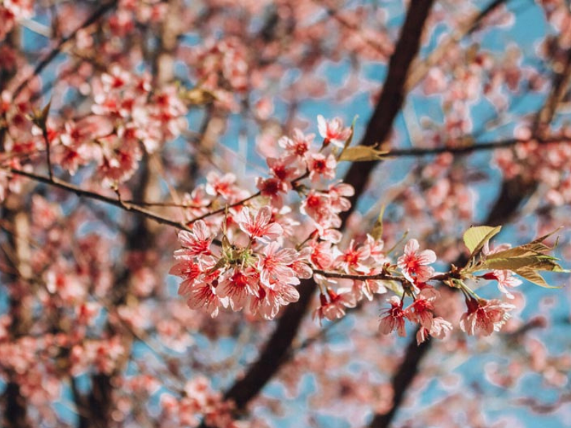Mai anh đào nở bung dần dần mang không khí mùa xuân về