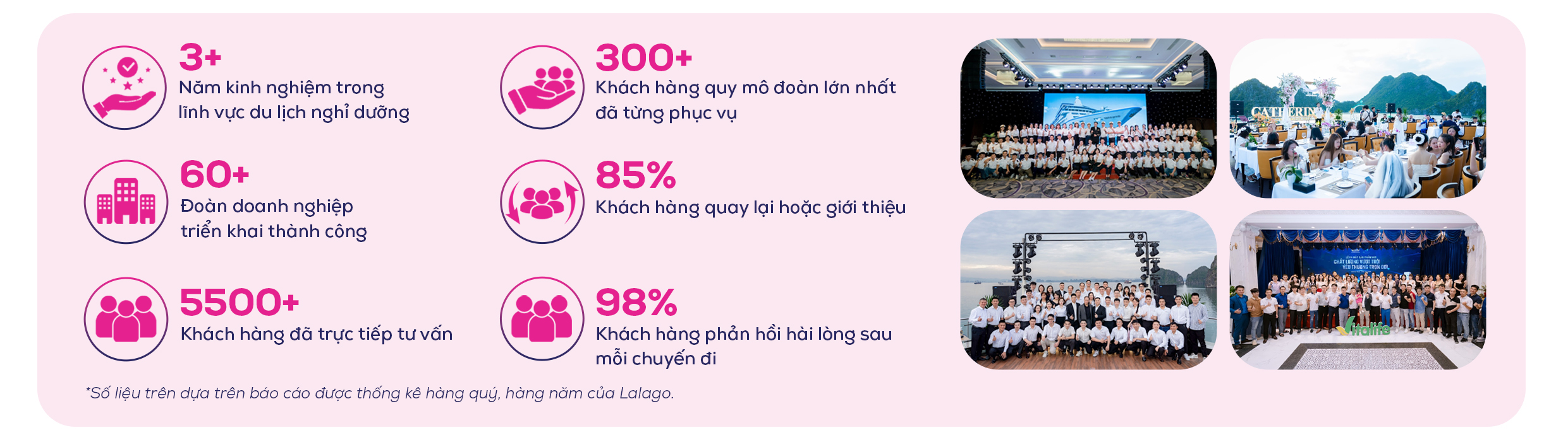 Mỗi con số không chỉ là kết quả mà còn là dấu mốc của những hành trình đã qua. Đó là số lượng khách hàng đã tin tưởng, những đoàn khách đã đồng hành và những trải nghiệm đã được tạo nên bởi Ms. Nguyễn Minh Anh.