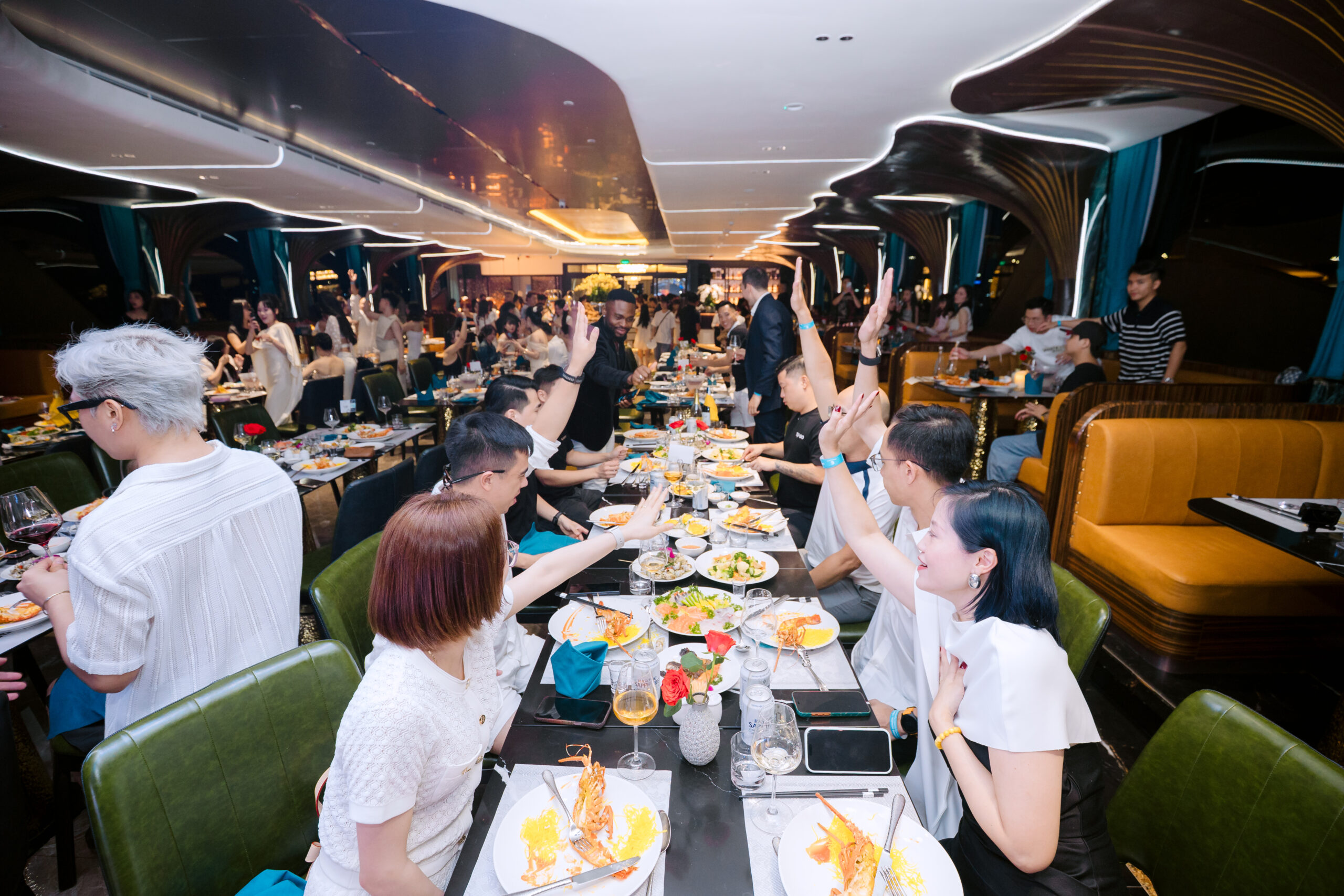 Đỉnh cao của hành trình chính là đêm Gala Dinner trên du thuyền Catherine Horizon. Đây không chỉ là một hoạt động trong lịch trình, mà còn là trải nghiệm mang tính biểu tượng khi đoàn là một trong những khách đầu tiên được đón tiếp. Như lời Tiểu Màn Thầu chia sẻ: “tối hôm đó trên du thuyền… bọn mình chỉ việc thảnh thơi, hưởng thụ mọi thứ, còn lại Lalago lo từ A đến Z, siêu nhiệt tình.”