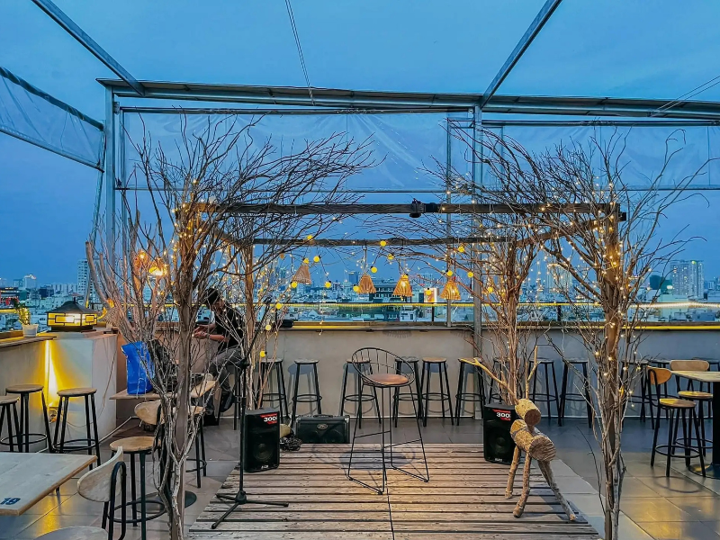 Trên Tầng Thượng là một trong những quán cà phê mang màu sắc rất riêng của Sài Gòn, nơi chỉ cần bước chân vào là đã cảm nhận được sự tách biệt hoàn toàn khỏi nhịp sống hối hả bên dưới. Quán gợi lên cảm giác trầm lắng, chậm rãi với không gian hoài cổ, mộc mạc, khiến nhiều người liên tưởng đến một góc Đà Lạt xưa được đặt giữa lòng thành phố.