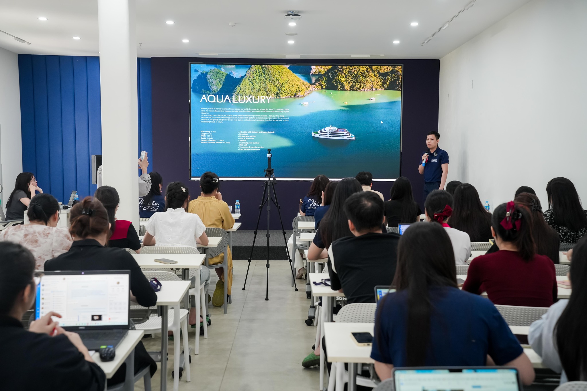 Sáng ngày 09/04/2026, đội ngũ Lalago đã tham gia buổi workshop đào tạo sản phẩm trực tiếp cùng đối tác Aqua Hospitality Group, xoay quanh hệ thống du thuyền Aqua – một trong những dòng sản phẩm nghỉ dưỡng cao cấp trên thị trường.